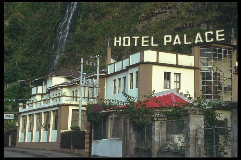 In der Stadt Baños (1800m): unser Hotel, direkt an einem Wasserall.