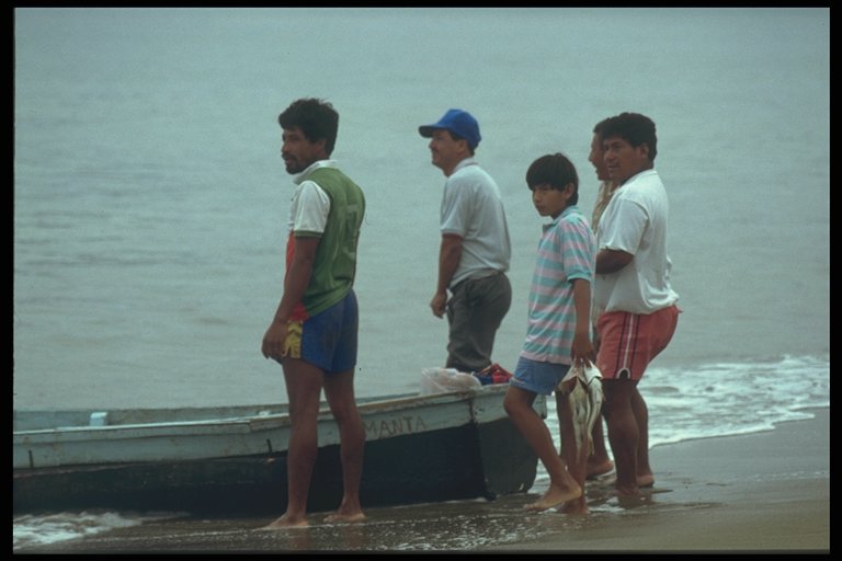 Dorfbewohner warten auf ankommende Fischerboote.