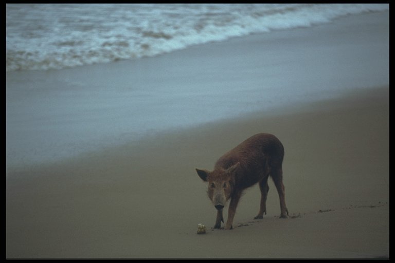 Schweine laufen im Ort und am Strand frei rum und leben von Abfällen.