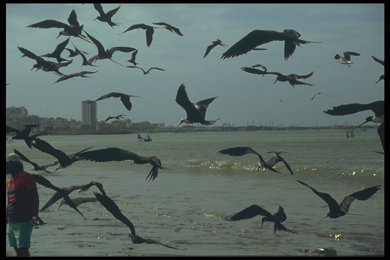 Ein Fischerboot fährt ein. Die Möven warten auf Abfälle.