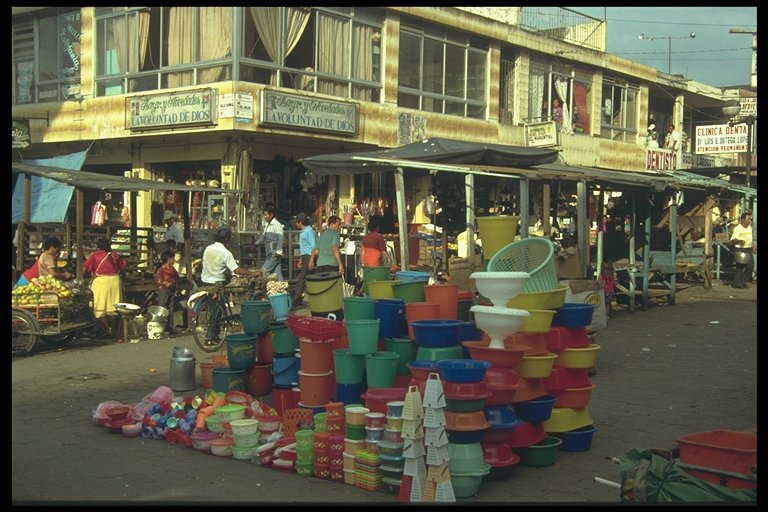 Markt in Manta. Auch hier die Vorliebe für Plastikgegenstände.