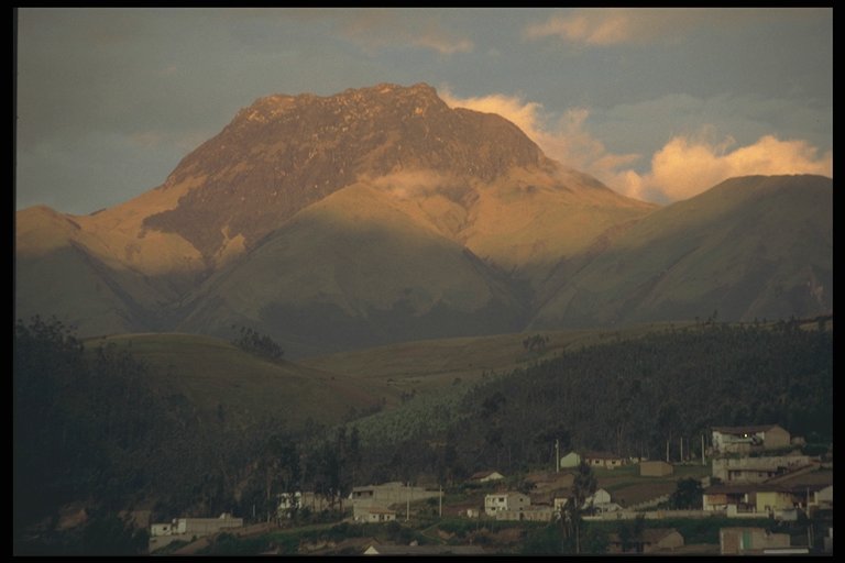 Einer der vielen Vulkane in der Abendsonne. Blick aus dem Hotelzimmer.