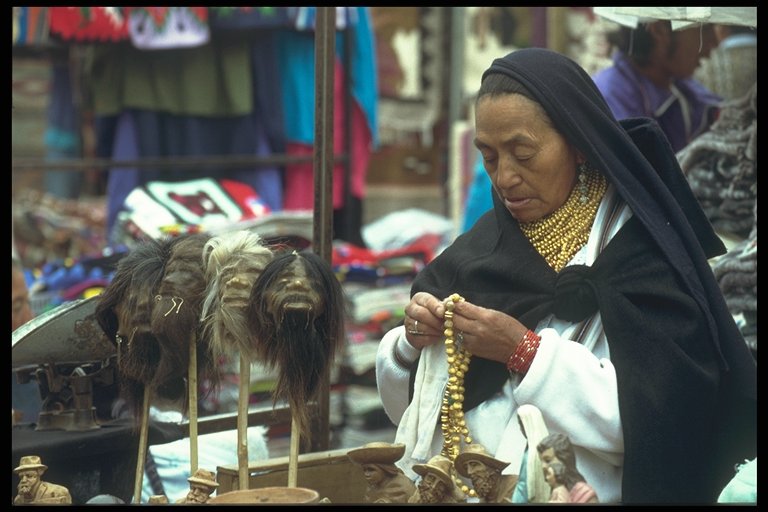 Auf dem Indiomarkt. Ob die Köpfe wohl echt sind?